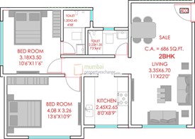 2 BHK56.4 Sq.mts. ( 607 Sq.ft. )5