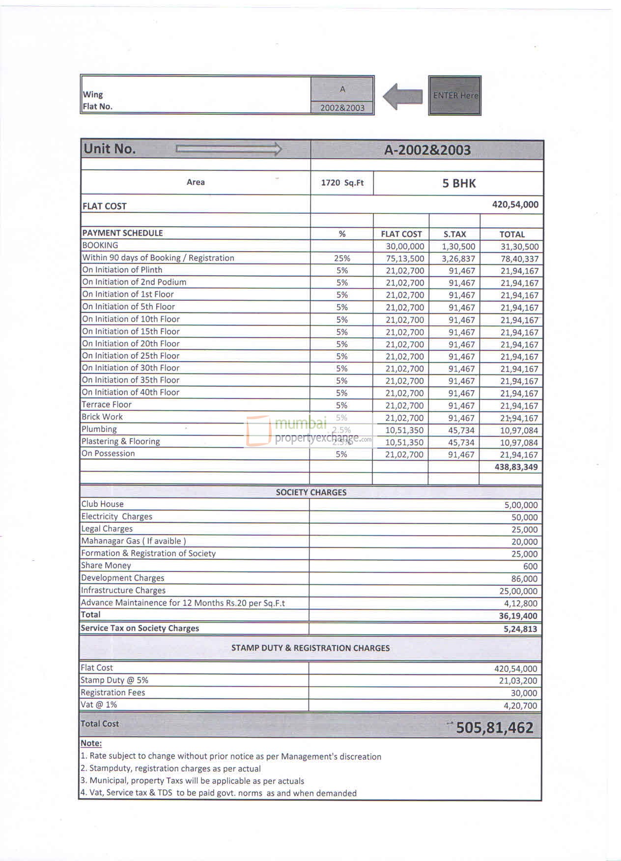 | 5 BHK | | 1720 Sq.ft. |