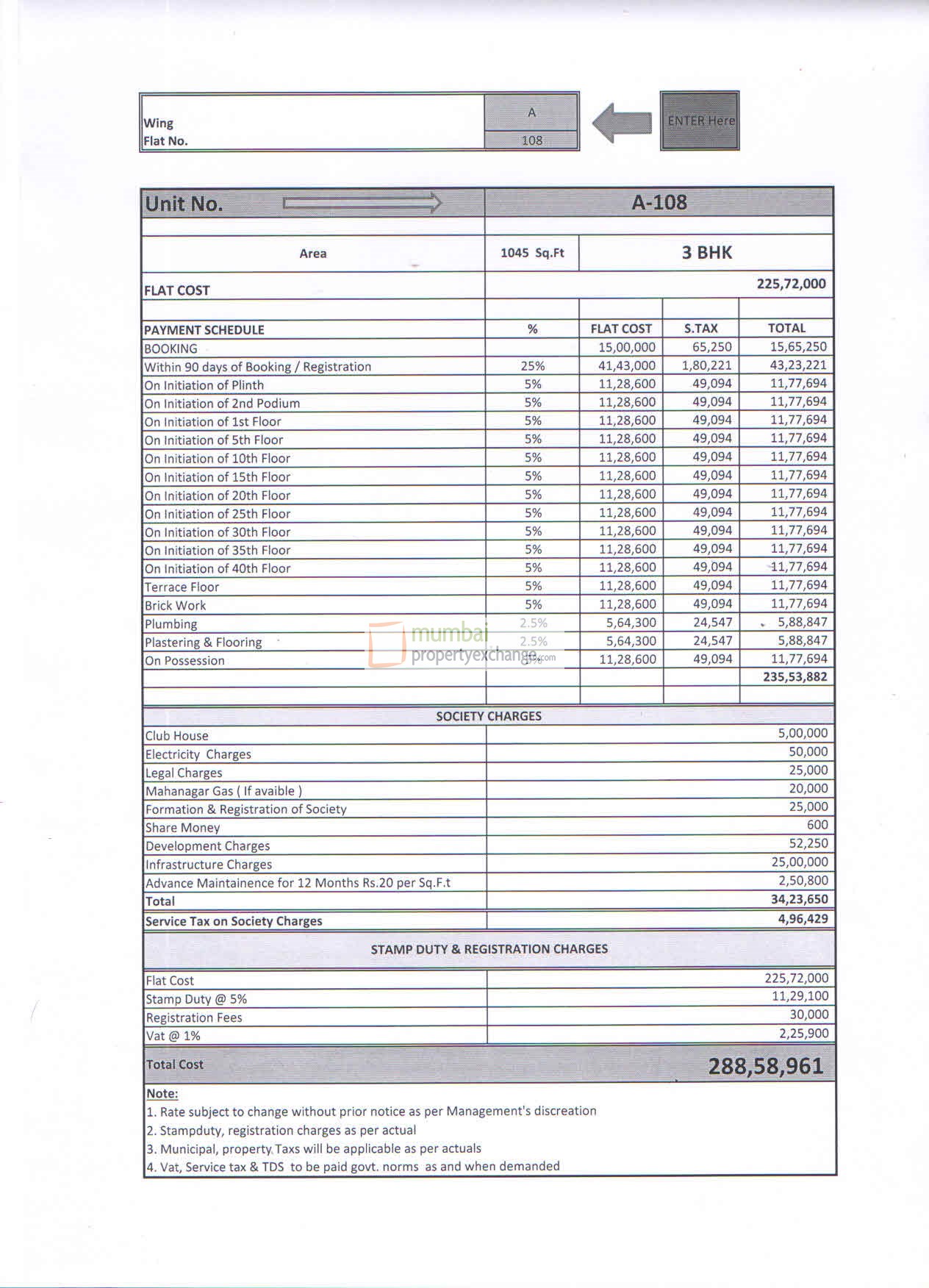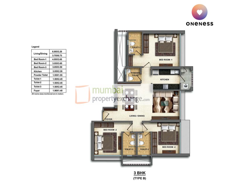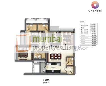 | 3 BHK | | 1045 Sq.ft. |