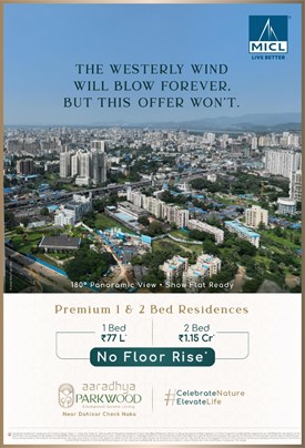 Aaradhya Parkwood is a Project by MICL. It is located at Mira Road East. Well connected to western Express Highway and Railway Station. Easy connectivity to hospitals, schools/college, entertainment zones etc. It is a 35 storey tower offering 1,2 and 2.5 BHK Residences which gives panoramic views. Unobstructed Higher Floor Premium Inventories. Jodi options of 1 +1 and 2 + 2 available. Has more than 20 amenities for each and everyone. It is a RERA approved project.
