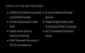 • 3BHK & 4 BHK Air-conditioned Touchpad Controlled Residences