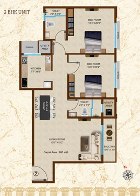 2 BHK650 Sq.ft. Carpet ₹ 1.86 Cr ++
