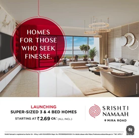 Kalpataru Srishti Namaah Project at Mira Road by Kalpataru Limited (P51700033851) is a RERA approved Under Construction Project with RERA ID P51700033851 slated to be ready for possession by Dec 2025 with 1/2/3 BHK apartments / Flats starting from ₹ 86.68 Lakh onwards