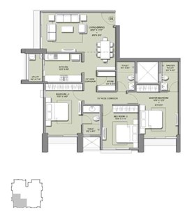 • Flooring : Vitrified Tiles in the Foyer, Living, Dining, Corridors, Anti-skid Ceramic Tiles in Balconies