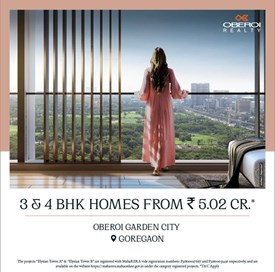 Oberoi Garden City Project at Goregaon East by Oberoi Realty Ltd (P51800027667) is a RERA approved Under Construction Project with RERA ID P51800027667 slated to be ready for possession by Jun 2029 with 3/4 BHK apartments / Flats starting from ₹ 7.2 Crs onwards