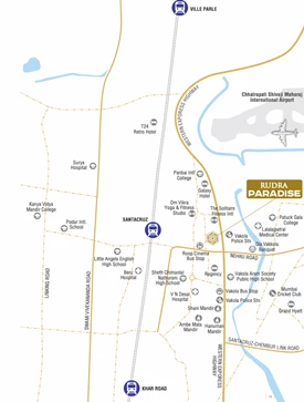 Rudra Paradise is a Residential Project Developed by the Rudra Builders. It is located at Santacruz East. The area is well-connected by both road and rail. Santacruz Railway Station, a prominent station on the Mumbai Suburban Railway Western Line, serves this locality. The Western Express Highway also passes through Santacruz East, enhancing its connectivity. Walking distance from Santacruz Railway Station. Located near reputed Schools & Colleges. Close proximity to the Mumbai Domestic & International Airport. Surrounded by spiritual places of worship. It is a 16 storey tower offering 2 and 3 BHK Residences. Commercial Office Spaces & Shops Starts from : 310 sq.ft -1134 sq.ft*. Modern amenities include Yoga Area, Meditation Area, Children's Play Area, Rooftop Garden, Gymnasium, Mechanised Parking, BBQ Area and many more.