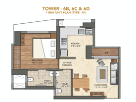 1 BHK35.79 Sq.mts. ( 385 Sq.ft. )7